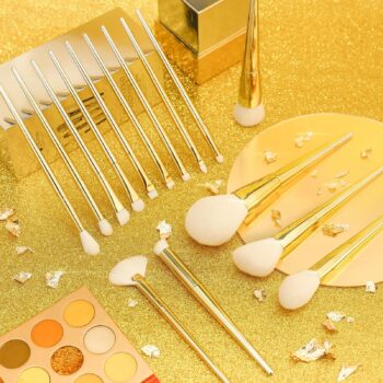 15-Piece Radiant Silver-Gold Makeup Brush Set for Face & Eyes
