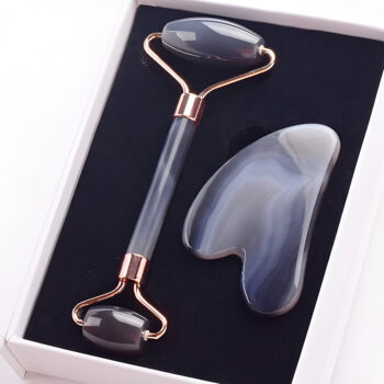 Natural Grey Agate Jade Roller & Gua Sha Set for Face and Body Massage
