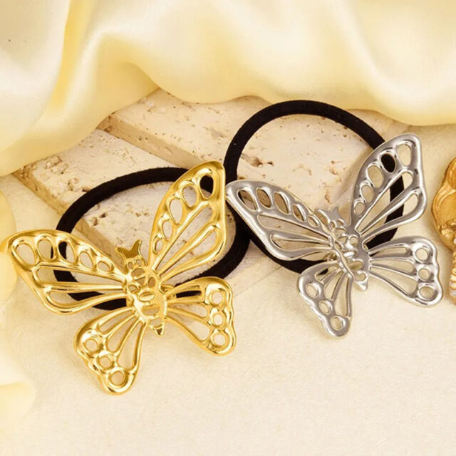 Transform your hairstyle with a touch of charm and shine with this stainless steel hollow butterfly hair tie. Designed for women who love combining elegance with practicality, this accessory features a beautifully crafted butterfly charm in your choice of gold or silver tones. Whether you’re heading to brunch, a beach outing, or a busy day at work, this piece elevates your look in an instant.