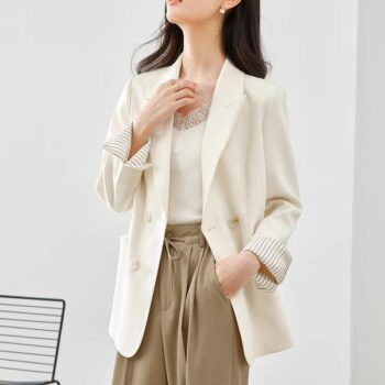 Women’s Slim Fit Double-Breasted Wool Blazer with Silk Lining