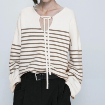 Spring Loose Hollow-Out V-Neck Sweater for Women