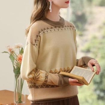 Cozy Fair Isle Knitting Sweater – Soft Mock Neck Pullover for Women