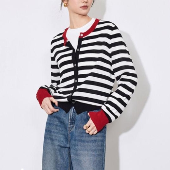 Women’s Knit Button Cardigan – Contrast Color, Round Neck, Elegant & Cozy