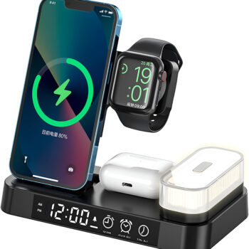Multifunction Wireless Charger Stand with Speaker, RGB Night Light & Alarm