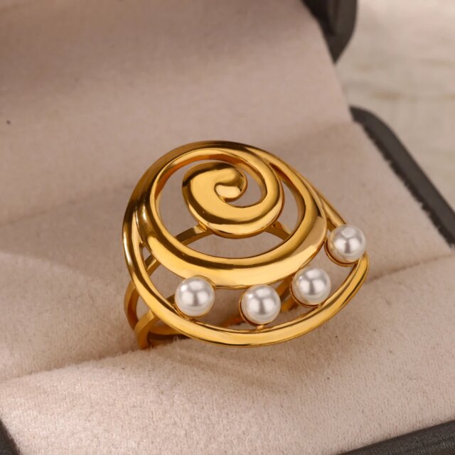 Add a touch of modern elegance to your jewelry collection with the Thread Pearl Wave Ring. This stunning piece is crafted from durable gold-colored stainless steel, featuring a wave-inspired design enhanced with a delicate pearl accent. Perfectly suited for weddings, parties, or as a thoughtful gift, this ring combines sophistication and versatility, making it a must-have accessory for any occasion. Whether worn alone or stacked with other rings, it’s a timeless piece that complements any outfit.
