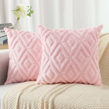 Cute Pink Soft Faux Fur Throw Pillow Cover 18×18 Plush Wool Valentines Day Decor