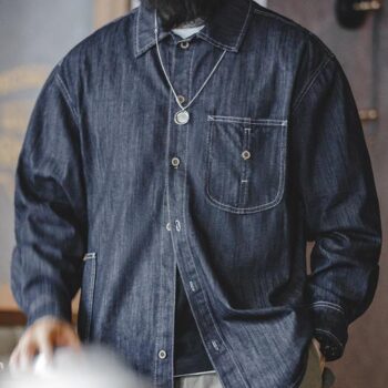 Vintage Washed Denim Long-Sleeved Shirt for Men