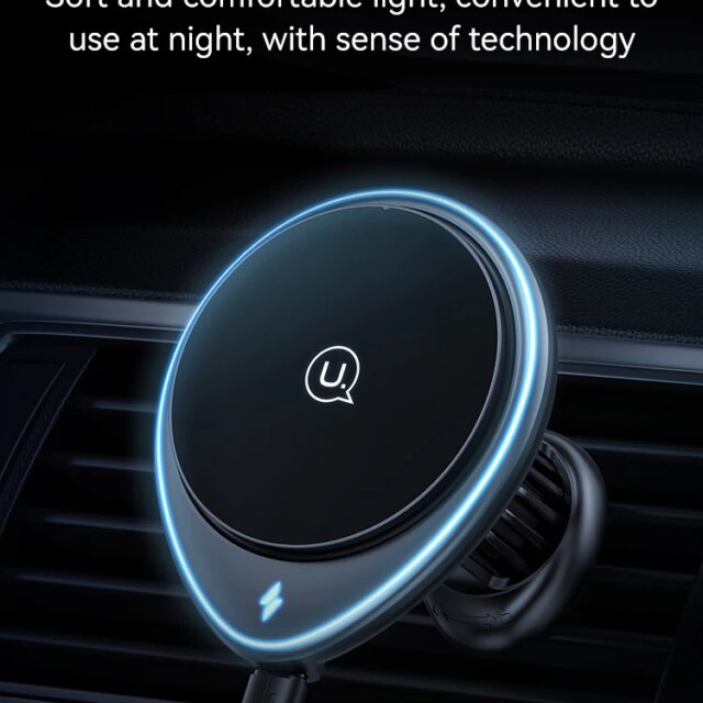 USAMS Car Phone Holder Magnetic Wireless Charger 15W Fast Charging For iPhone 15 14 13 Pro Max Air Vent Mount Car Charger Holder