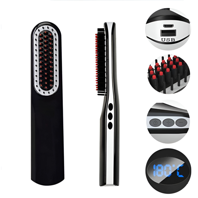 The USB Wireless Charging Electric Hair Brush is the solution to all your hair and beard styling needs. Whether you’re in a rush or have time to perfect your look, this straightening comb adapts to your lifestyle. Its sleek, portable design makes it perfect for home use, but its lightweight construction and cordless functionality ensure that it’s also perfect for travel. No more worrying about tangled cords or searching for an outlet—just grab your brush, charge it up, and go!