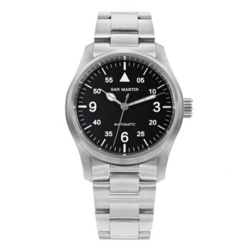 38.5mm Vintage Pilot Automatic Watch with Retro Lume & Stainless Steel Band