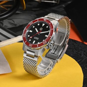 Automatic Diver Watch with Milanese Bracelet, Ceramic Bezel, and 200m Water Resistance