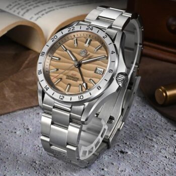 39mm Luxury GMT Watch for Men with Desert Texture Dial – Automatic, Waterproof, Luminous