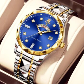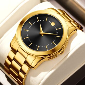 Men’s Gold Quartz Watch with Gift Box – Elegant Business & Casual Style