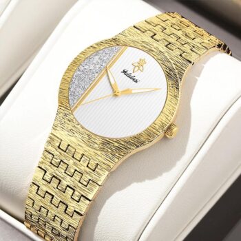 Elegant Gold Women’s Quartz Watch with Sun Pattern and Gift Box Set