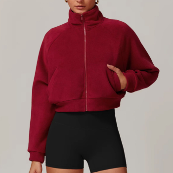 Velvet Women’s Stand Collar Zipper Coat with Pockets