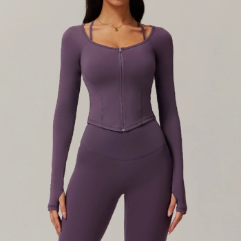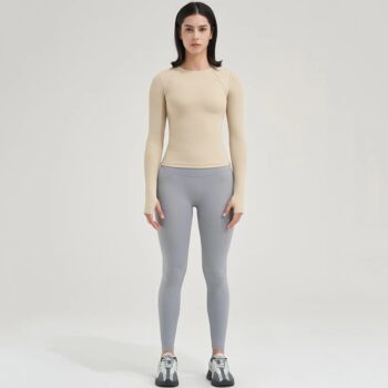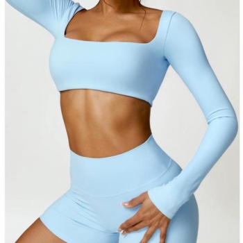 Women’s Quick-Dry Long Sleeve Crop Top – Square Neck Sportswear for Gym & Yoga