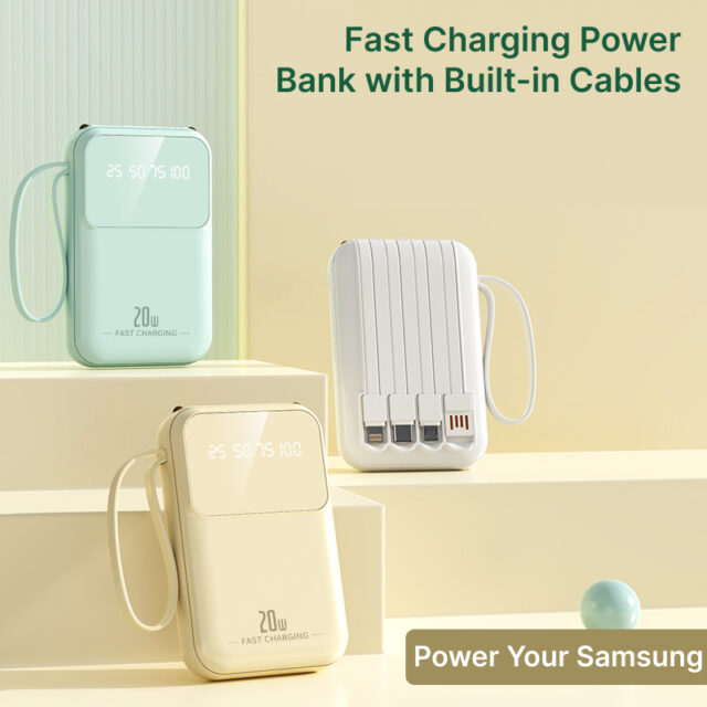 Don’t let a low battery hold you back. Get the Fast Charging Power Bank with built-in cables for your Samsung and other devices. Click now to stay connected and in charge, no matter where life takes you!